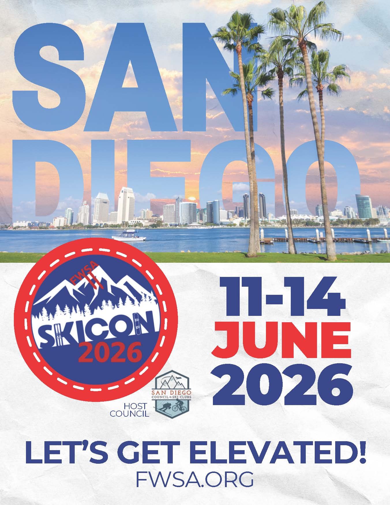 The Far West Ski Associations' 93rd Annual SkiCon will be held in beautiful San Diego, California.  Hosted by the San Diego Council of Ski Clubs, Far West is looking forward to coming back to San Diego, June 11-14, 2026.